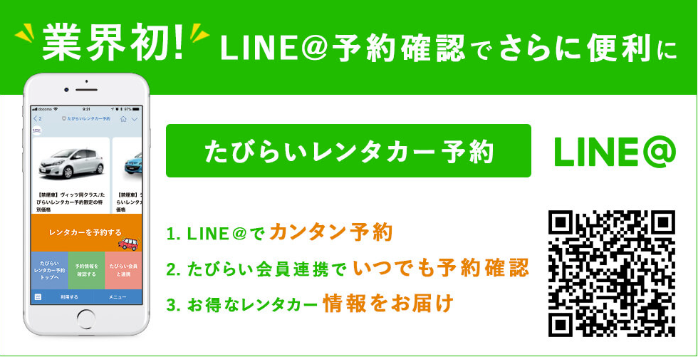 「たびらいレンタカー予約」LINE@で 予約情報や出発店舗の確認が 可能になりました。